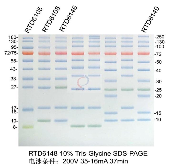Product: RTD6108 三色預(yù)染寬分子量蛋白Marker(10-180kD)